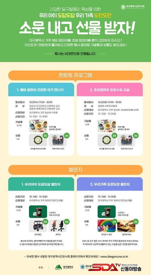 ½ÅûÀº 10¿ù 1ÀϺÎÅÍ ´ë±¸½Ã°£È£»çȸ ȨÆäÀÌÁö¸¦ ÅëÇØ °¡´ÉÇÏ¸ç ´ë±¸½Ã °ÅÁÖ ÀÓ»êºÎ ¹× ¼öÀ¯ºÎ, ¿µ¡¤À¯¾Æ°¡Á¤À̶ó¸é ´©±¸³ª Âü¿©ÇÒ ¼ö ÀÖ½À´Ï´Ù. ƯÈ÷ ¿¹ºñ¾ö¸¶¿Í Ãʺ¸¾ö¸¶·Î ³ª´©¾î °¢°¢ ÁÜ(ZOOM)À¸·Î ÁøÇàµÇ´Â ¸àÅ丵 ÇÁ·Î±×·¥Àº °£È£»çȸ ȨÆäÀÌÁö¸¦ ÅëÇÑ »çÀü½ÅûÀ» ¹Þ½À´Ï´Ù.