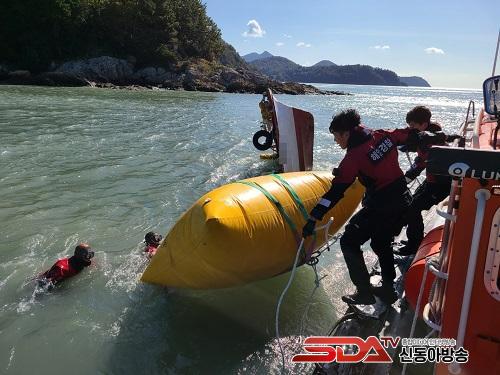 ÇØ°æÀÌ »ç°í ÇöÀå¿¡ µµÂøÇßÀ» ¶© »ç°í ¼±¹Ú AÈ£´Â ħ¸ôµÇ¾î ¼±¼ö¸¸ º¸ÀÌ´Â »óÅ¿´À¸¸ç, °æºñÇÔÁ¤ ¹× ¹Î°£±¸Á¶¼± µîÀÌ ÇÕµ¿À¸·Î ÁÖº¯ ¼ö»ö¿¡ ³ª¼± °á°ú, ¹Î°£±¸Á¶¼± ½ºÇǵåÈ£(9.77Åæ, ³¬½Ã¾î¼±)°¡ ¼ö»ö 30¿© ºÐ¸¸¿¡ Àα٠°¹¹ÙÀ§¿¡¼ »ç°í¼±¹Ú AÈ£ ¼±Àå ±è¸ð(63¼¼)¾¾¸¦ ¹«»çÈ÷ ±¸Á¶Çß½À´Ï´Ù.