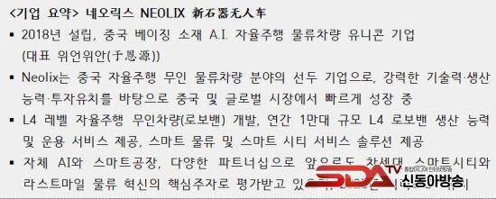 À̹ø ÅõÀÚÀÇÇ⼿¡´Â Áß±¹ÀÇ ÀÚÀ²ÁÖÇà ¹°·ù ºÐ¾ß¸¦ ¼±µµÇÏ´Â ±â¾÷ÀÎ NEOLIXÞä°¡ ÇâÈÄ ÀÎõ ³» ÁÖ¿ä ¹°·ù½Ã¼³¿¡ ½º¸¶Æ® ¹°·ù ÀÚµ¿È ¼ºñ½º Á¦°øÇÏ°í ¹°·ù Çõ½Åü°è ±¸ÃàÀ» ÅëÇØ ¡®¸ðºô¸®Æ¼(mobility) À¶ÇÕ »ýŰ衯¸¦ Á¶¼ºÇϰڴٴ Àǻ縦 ¹àÇû´Ù. ÀÌ¿Í ÇÔ²² ÇâÈÄ °È ³²´Ü °æÁ¦ÀÚÀ¯±¸¿ª ³» ½Å±Ô ÅõÀÚ °¡´É¼ºµµ Á¦½ÃÇß´Ù.