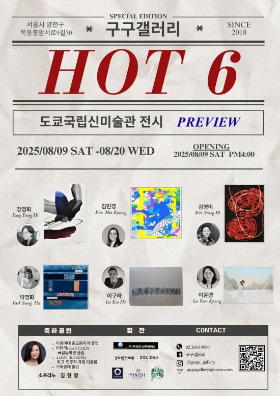 À̹ø î÷¿¡´Â µ¿¾çÀû »çÀ¯¸¦ ȸȿ¡ ´ã¾Æ³»´Â °¿µÈñ ÀÛ°¡¸¦ ºñ·ÔÇØ, ¸¶Æ¼½ºÀÇ »ö並 ÀçÇØ¼®ÇÑ ±è¹Î°æ, ¹°°¨ÃþÀ» ±Ü¾î³»´Â µ¶Ã¢Àû ±â¹ýÀ» ±¸»çÇÏ´Â ±è¿µ¹Ì, õÀ» ¼Õ¼ö ¿°»öÇÏ°í ¼Ò°¢ÇÏ¿© Çѱ¹Àû Á¤¼¸¦ ±¸ÇöÇÑ ¹Ú¿µÈñ, ³°Àº ±¤¸ñ¿¡ ¸Ô°ú ±Ý¹ÚÀ¸·Î ÀÛ¾÷ÇÑ PATINA ½Ã¸®ÁîÀÇ À̱¸ÇÏ, ±×¸®°í ¹Ù¶÷°á°ú ¼Ò³àÀÇ ¸Ó¸®Ä«¶ôÀ» ¼¶¼¼ÇÑ º×Áú·Î Ç¥ÇöÇÑ ÀÌÀ±·É ÀÛ°¡±îÁö, °³¼º ³ÑÄ¡´Â 6ÀÎÀÇ ÀÛǰÀÌ ¼±º¸ÀδÙ.