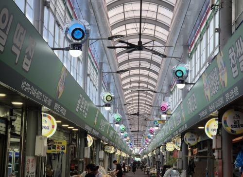 ÀÌ¿¡ ±º»ê½Ã´Â ¿©¸§Ã¶ ¹«´õÀ§·ÎºÎÅÍ ÄèÀûÇÑ ÀüÅë½ÃÀå ȯ°æÀ» Á¦°øÇϰí, »óÀΰú À̿밴ÀÇ ¿Â¿Áúȯ ¿¹¹æÀ» À§ÇÏ¿© ¾ÆÄÉÀ̵å ÁöºØ 220m ±¸°£¿¡ Äð¸µÆ÷±× 44´ë¿Í HVLSÆÒ 8°³¸¦ ¼³Ä¡Çß´Ù.
