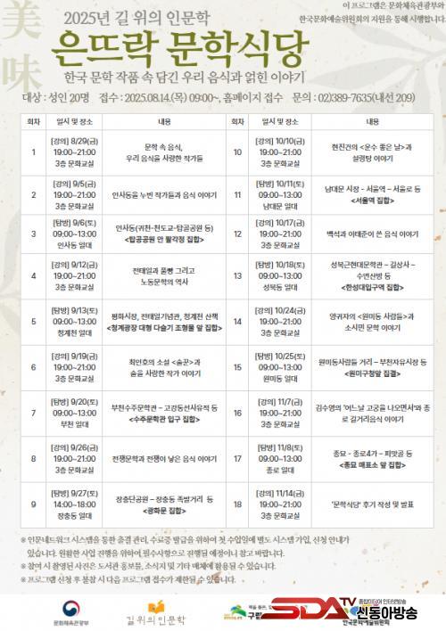 ¡®Àº¶ß¶ô ¹®ÇнĴ硯Àº °ÀÇ¿Í Å½¹æÀ» ¹ø°¥¾Æ ¿î¿µÇÏ¸é¼ Àι®ÇÐÀû ÁÖÁ¦¸¦ »õ·Î¿î ¹æ½ÄÀ¸·Î ´©·Áº¸´Â ÇÁ·Î±×·¥ÀÌ´Ù. À̹ø ÇÁ·Î±×·¥Àº ¹®ÈüÀ°°ü±¤ºÎ°¡ ÁÖÃÖÇÏ°í ¹®È¿¹¼úÀ§¿øÈ¸°¡ ÁÖ°üÇÏ´Â ¡®2025³â ±æ À§ÀÇ Àι®ÇС¯ °ø¸ð»ç¾÷¿¡ ¼±Á¤µÆ´Ù.
