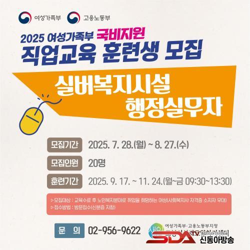 ±³À° ±â°£Àº 9¿ù 17ÀϺÎÅÍ 11¿ù 24ÀϱîÁö´Ù. ³ëÀκ¹ÁöºÐ¾ß·Î Ãë¾÷À» Èñ¸ÁÇÏ´Â ¿©¼º ±¸Á÷ÀÚ ´©±¸³ª °úÁ¤¿¡ Âü¿©ÇÒ ¼ö ÀÖ´Ù.