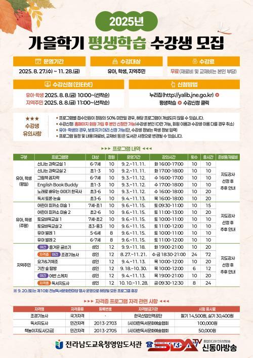 Àü¶ó³²µµ±³À°Ã»¿µ¾Ïµµ¼­°ü, 2025³â °¡À»ÇÐ±â Æò»ýÇнÀÇÁ·Î±×·¥ ¼ö°­»ý ¸ðÁý