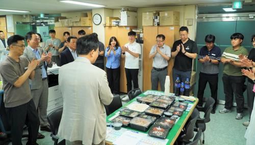 ÀÌ¿¡ À±º´Å ½ÃÀåÀº ¼öÇØ º¹±¸¿Í µ¿½Ã¿¡ ¾÷¹«¿¡ ÁöÄ£ Àü °øÁ÷ÀÚµéÀÇ »ç±â ÁøÀÛÀ» À§ÇØ Àü Á÷¿ø ´ë»ó °£½Ä Á¦°ø ¹× °£´ãȸ¸¦ ½Ç½ÃÇß´Ù.
