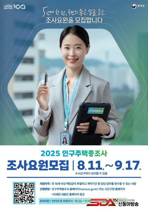 ½Åû ±â°£Àº Á¶»ç°ü¸®ÀÚ¤ýÁ¶»çÁö¿ø´ã´çÀÚ´Â 8¿ù 11ÀϺÎÅÍ 8¿ù 22ÀϱîÁö, Á¶»ç¿øÀº 8¿ù 11ÀϺÎÅÍ 9¿ù 17ÀϱîÁö´Ù. ½ÅûÀº Àα¸ÁÖÅÃÃÑÁ¶»ç ´©¸®Áý(www.census.go.kr)À̳ª ½ÃÈï½Ãû ¹æ¹®À» ÅëÇØ ½ÅûÇÒ ¼ö ÀÖ´Ù.