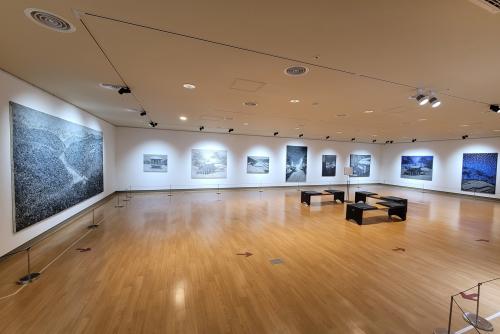 Àü½Ã´Â °ø°£ Àüü¸¦ È帣µí ¿¬°áÇϸç, °ü¶÷°´ÀÌ °ÉÀ½À» ¿Å±æ¼ö·Ï ÀÛǰÀÇ »öä¿Í ¿Âµµ°¡ º¯Çذ£´Ù. ÃÊÀÔ¿¡¼­´Â ÀÜÀÜÇÏ°í ¼­Á¤ÀûÀÎ Àå¸éÀÌ, Áß¹ÝÀ¸·Î °¥¼ö·Ï ±í°í ³ó¹ÐÇÑ »öÀÇ ¿ï¸²ÀÌ ÆîÃÄÁö°í, ¸¶Áö¸·¿¡´Â ´Ù½Ã °í¿äÇÏ°í »ç»öÀûÀÎ È­¸éÀÌ ¿©¿îÀ» ³²±ä´Ù. À̸¦ ÅëÇØ °ü¶÷°´Àº ¡®±â¾ïÀÌ ¹øÁö°í ÇǾ´Â °úÁ¤¡¯À» ½Ã°¢ÀûÀ¸·Î üÇèÇÏ°Ô µÈ´Ù.
