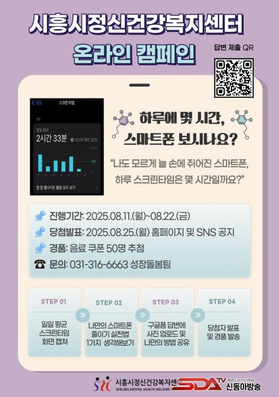 Âü¿© ¹æ¹ýÀº ½º¸¶Æ®Æù °úÀÇÁ¸ ÀÚ°¡ Á¡°ËÇ¥¿Í »ç¿ë ½À°ü °³¼± ¹æ¹ýÀ» ´ãÀº Ä«µå´º½º È®ÀÎ, Âü¿©ÀÚ º»ÀÎÀÇ ÀÏÀÏ Æò±Õ ¡®½ºÅ©¸°Å¸ÀÓ¡¯ ĸó È­¸é Á¦Ãâ, º»Àθ¸ÀÇ ½º¸¶Æ®Æù »ç¿ë ÁÙÀ̱⠽Çõ¹ý ÀÛ¼º ¼øÀ¸·Î ÁøÇàµÈ´Ù. Âü¿© °á°ú´Â 8¿ù 25ÀÏ ½ÃÈï½ÃÁ¤½Å°Ç°­º¹Áö¼¾ÅÍ ´©¸®Áý¿¡¼­ ¹ßÇ¥µÈ´Ù.