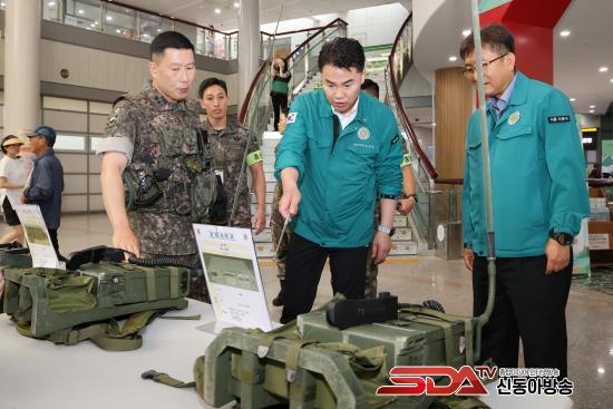 ÇÑÆí 18ÀÏ ±¸Ã» 1Ãþ ·Îºñ¿¡¼­´Â µµºÀ±¸´ë´ë ÁÖ°üÀÇ ±º Àåºñ Àü½Ãȸ°¡ ¿­·È´Ù. Àü½Ãȸ´Â Áö¿ª ³» ¾Èº¸ ÀǽÄÀ» ³ôÀ̰í À»Áö¿¬½À °ø°¨´ë¸¦ Çü¼ºÇϱâ À§ÇØ ¸¶·ÃµÆ´Ù.