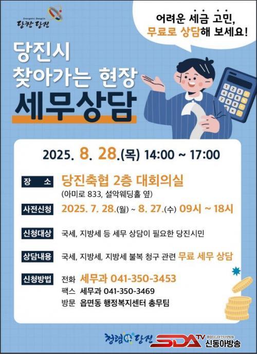À̹ø »ó´ãÀº 8¿ù 28ÀÏ ¸ñ¿äÀÏ ¿ÀÈÄ 2½ÃºÎÅÍ 5½Ã±îÁö ´çÁøÃà»ê³óÇù(¾Æ¹Ì·Î 833, ¼³¾Ç¿þµùȦ ¿·) 2Ãþ ´ëȸÀǽǿ¡¼ ÁøÇàµÇ¸ç, ´çÁø½Ã¹Î ´©±¸³ª ±¹¼¼ ¹× Áö¹æ¼¼ Àü¹Ý°ú Áö¹æ¼¼ ºÒº¹ û±¸ µî¿¡ ´ëÇØ Àü¹® ¼¼¹«»ç¿Í 1:1 ¹«·á ´ë¸é »ó´ãÀ» ¹ÞÀ» ¼ö ÀÖ´Ù.