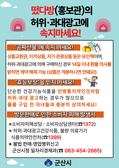 ±º»ê½Ã °ü°èÀÚ´Â ¡°¾î¸£½ÅÀ» ´ë»óÀ¸·Î ÇÑ ÇãÀ§¡¤°ú´ë±¤°í ÇÇÇØ¸¦ ¿¹¹æÇϱâ À§ÇØ ´Ü¼Ó°ú È«º¸¸¦ °ÈÇϰڴ١±¸ç ¡°¹æ¹®ÆÇ¸Å ÇÇÇØ´Â ´Ü¼øÇÑ ±ÝÀüÀû ¼Õ½ÇÀ» ³Ñ¾î ¼ÒºñÀÚÀÇ ½É¸®Àû ÇÇÇØ±îÁö À̾îÁö´Â °æ¿ì°¡ ¸¹´Ù. ÁÖº¯¿¡¼ ¶¹´Ù¹æ ÀÇ½É »ç·Ê°¡ ÀÖÀ» °æ¿ì Àû±ØÀûÀ¸·Î ½Å°íÇØ´Þ¶ó¡±°í ´çºÎÇß´Ù.