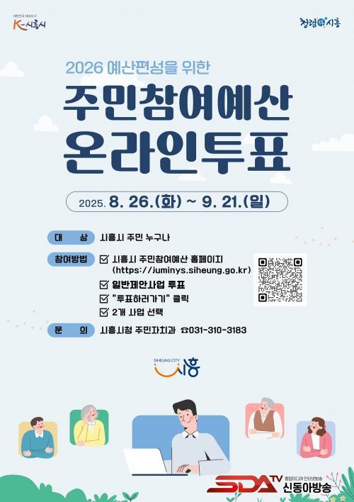 [½Åµ¿¾Æ¹æ¼Û ½ÃÈï½Ã=À̽ŵ¿±âÀÚ] ½ÃÈï½Ã°¡ 2026³â ¿¹»êÆí¼ºÀ» À§ÇÑ ÁÖ¹ÎÂü¿©¿¹»ê ÀϹÝÁ¦¾È»ç¾÷ ¿Â¶óÀÎÅõÇ¥¸¦ 8¿ù 26ÀϺÎÅÍ 9¿ù 21ÀϱîÁö ½Ç½ÃÇÑ´Ù.