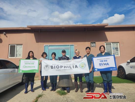 °Ç±¹´ëÇб³ ¼öÀǰú´ëÇÐ ºÀ»çµ¿¾Æ¸® ¡®¹ÙÀÌ¿ÀÇʸ®¾Æ¡¯ ¼Ò¼Ó Çлýµé°ú ¼öÀǻ簡 ºÀ»çȰµ¿ ÈÄ Çϳ²½Ã µ¿¹°º¸È£¼¾ÅÍ ¾Õ¿¡¼­ ±â³äÃÔ¿µÀ» Çϰí ÀÖ´Ù.