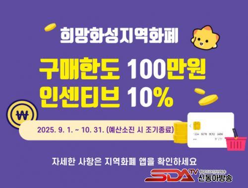[½Åµ¿¾Æ¹æ¼Û=ÀÌÀçö±âÀÚ] È­¼ºÆ¯·Ê½Ã(½ÃÀå Á¤¸í±Ù)°¡ 9¿ù°ú 10¿ù µÎ ´Þ°£ ¡®Èñ¸ÁÈ­¼ºÁö¿ªÈ­Æó¡¯ÀÇ Àμ¾Æ¼ºê°¡ Áö±ÞµÇ´Â °³Àκ° ±¸¸Å Çѵµ¸¦ ¿ù ÃÖ´ë 50¸¸ ¿ø¿¡¼­ 100¸¸ ¿ø±îÁö·Î µÎ ¹è »óÇâÇÑ´Ù°í 2ÀÏ ¹àÇû´Ù.
