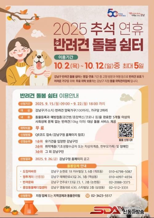 [½Åµ¿¾Æ¹æ¼Û °­³²±¸=À̽ŵ¿±âÀÚ] ²ÞÀÌ ¸ðÀÌ´Â µµ½Ã, ¹Ì·¡¸¦ ±×¸®´Â °­³²±¸°¡ Ãß¼® ¿¬ÈÞ¸¦ ¾ÕµÎ°í ±¸¹ÎµéÀÇ ¹Ý·Á°ß µ¹º½ ºÎ´ãÀ» ´ú±â À§ÇØ ¡®¹Ý·Á°ß µ¹º½ ½°ÅÍ¡¯¸¦ ¿î¿µÇÑ´Ù. ½ÅûÀº 9¿ù 15ÀϺÎÅÍ 22ÀϱîÁö ¹ÞÀ¸¸ç, ¼±Á¤µÈ ¹Ý·Á°ßÀº 10¿ù 2ÀϺÎÅÍ 12ÀÏ »çÀÌ ÃÖ´ë 5Àϰ£ ¹«·á·Î µ¹º½ ¼­ºñ½º¸¦ ÀÌ¿ëÇÒ ¼ö ÀÖ´Ù.