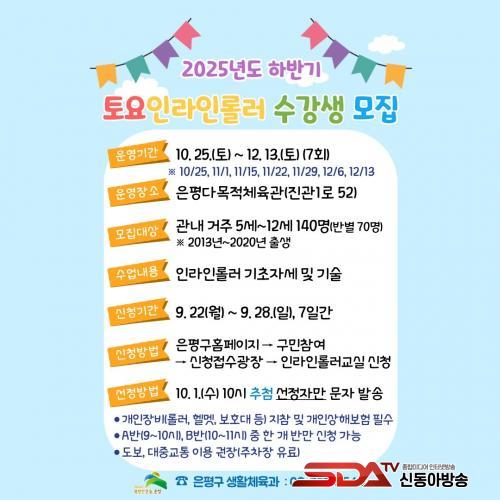 ¡®Åä¿ä ÀζóÀηѷ¯ ±³½Ç¡¯Àº ÀºÆò±¸ Á÷Àå¿îµ¿°æ±âºÎ ÀζóÀηѷ¯ ¼±¼ö´ÜÀÇ Àç´É±âºÎ·Î ÁøÇàµÇ´Â ¼ö¾÷À¸·Î, ³»´Þ 25ÀϺÎÅÍ 12¿ù 13ÀϱîÁö ÃÑ 7ȸÂ÷·Î ¿î¿µµÈ´Ù. A¹ÝÀº ¿ÀÀü 9½ÃºÎÅÍ 10½Ã±îÁö, B¹ÝÀº ¿ÀÀü 10½ÃºÎÅÍ 11½Ã±îÁö ¹«·á·Î ÁøÇàµÈ´Ù.