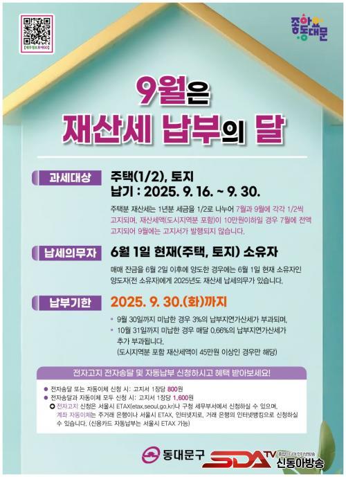 9¿ù Á¤±âºÐ Àç»ê¼¼ÀÇ ³³ºÎ ±â°£Àº 9¿ù 16ÀϺÎÅÍ 30ÀϱîÁöÀ̸ç, Àü±¹ ¾îµð¼­³ª Á¾ÀÌ °íÁö¼­ ¾øÀÌ ¼­¿ï½Ã ÀÎÅͳݳ³ºÎ½Ã½ºÅÛ(etax.seoul.go.kr), STAX ¾Û, ½º¸¶Æ®ÆùÀ» ÅëÇÑ ½Å¿ëÄ«µå °áÁ¦‧°èÁÂÀÌü‧°£Æí°áÁ¦, Àü¿ë°èÁ ÀÌü, ÀºÇà CD/ATM µîÀ» ÀÌ¿ëÇØ Æí¸®ÇÏ°Ô ³³ºÎÇÒ ¼ö ÀÖ´Ù.