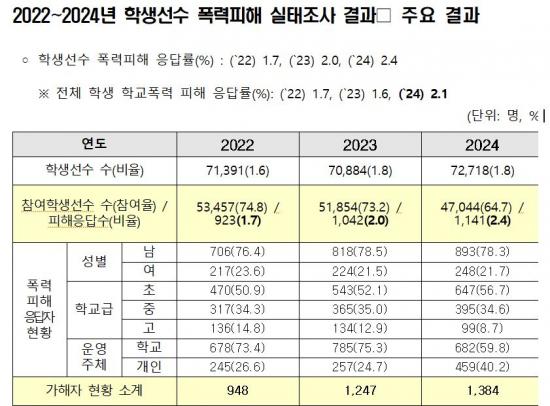 ¡à 2024³â Çлý¼±¼ö Æø·ÂÇÇÇØ ÇÇÇØÀÀ´äÀº 1,141°Ç(ÇÇÇØÀÀ´ä·ü 2.4%)À¸·Î ³ªÅ¸³µ´Ù. ÀÌ´Â 2022³â 923°Ç(1.7%), 2023³â 1,042°Ç(2.0%)¿¡¼ ²ÙÁØÈ÷ Áõ°¡ÇØ ¿Â ¼öÄ¡´Ù.