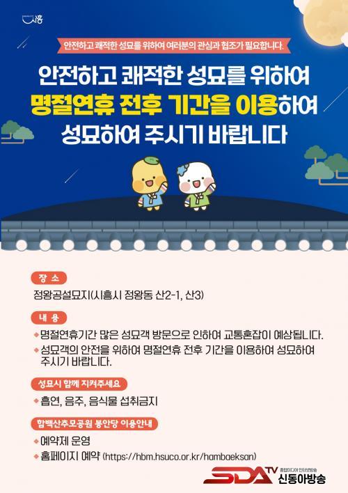 Á¤¿Õ°ø¼³¹¦Áö(Á¤¿Õµ¿ »ê2-1, »ê 3)´Â ½ÃÈï½Ã À¯ÀÏÀÇ °ø¼³¹¦Áö·Î, ¸íÀý ´çÀϸ¶´Ù ¸¹Àº ½Ã¹ÎÀÌ Ã£°í ÀÖ´Ù. ƯÈ÷ ¿ÃÇØ´Â ¼º¹¦°´ Áõ°¡°¡ ¿¹»óµÅ ¿¬ÈÞ ÀüÈÄ ¿©À¯ ¼º¹¦ Âü¿© ÇùÁ¶°¡ Àý½ÇÇÏ´Ù.