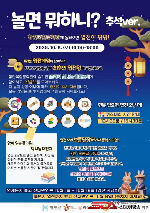 ƯÈ÷ 10¿ù 8ÀÏ ¿ÀÀü 10½ÃºÎÅÍ ¿ÀÈÄ 6½Ã±îÁö´Â ÇÔ¾È µð¿¥¿À(DMO), ÇԾȹ®ÀÎÇùȸ, ÇԾȳó¿ä¿Í ÇÔ²²ÇÏ´Â ¡®³î¸é ¹¹ÇÏ´Ï? Ãß¼® ¹öÀü¡¯ÀÌ ¿·Á °¡Á· ´ÜÀ§ ¹æ¹®°´µé¿¡°Ô dz¼ºÇÑ ÀüÅë¹®È Ã¼ÇèÀÇ ÀåÀÌ ¸¶·ÃµÉ ¿¹Á¤ÀÌ´Ù.