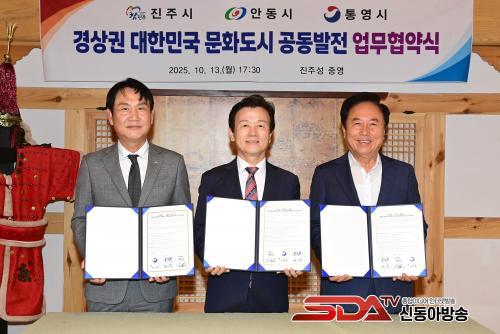 ÁøÁֽô 13ÀÏ ÁøÁÖ¼º ¡®Áß¿µ¡¯¿¡¼ Á¶±ÔÀÏ ÁøÁÖ½ÃÀåÀ» ºñ·ÔÇØ ±Ç±â⠾ȵ¿½ÃÀå, Çã´ë¾ç Å뿵ºÎ½ÃÀå µî 3°³ µµ½ÃÀÇ ½ÃÀå°ú °ü°èÀÚµéÀÌ Âü¼®ÇØ ¡®°æ»ó±Ç ´ëÇѹα¹ ¹®Èµµ½Ã ¾÷¹«Çù¾à½Ä¡¯À» °®°í ¹®Èµµ½ÃÀÇ ºñÀü°ú Çù·Â¹æ¾ÈÀ» °øÀ¯Çß´Ù.