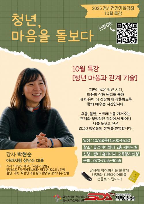 ¼ö°ÀοøÀº 20¸íÀ¸·Î ¼±Âø¼øÀ¸·Î Á¢¼öÇϸç, Âü¿© ½ÅûÀº Æ÷½ºÅÍÀÇ Å¥¾Ë(QR)ÄÚµå ¶Ç´Â È¼º½ÃÁ¤½Å°Ç°º¹Áö¼¾ÅÍ °ø½Ä ȨÆäÀÌÁö(www.hsmind.or.kr)¿¡¼ ÇÒ ¼ö ÀÖ´Ù.