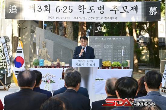 [½Åµ¿¾Æ¹æ¼Û °æ³²ÁøÁÖ=³²±Ã¿µ±â±âÀÚ] ÁøÁֽô 27ÀÏ °æ»ó±¹¸³´ëÇб³ Ä¥¾ÏÄ·ÆÛ½ºÀÇ ¡®6¡¤25ÂüÀü Çеµº´ ¸íºñ¡¯ ¾Õ¿¡¼­ ¡®Á¦3ȸ 6¡¤25ÂüÀü Çеµº´ Ã߸ðÁ¦¡¯¸¦ °ÅÇàÇß´Ù.