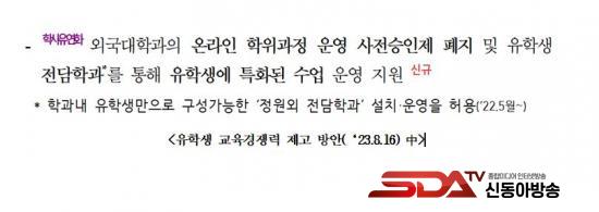 ¡à 2023³â ±³À°ºÎ´Â 2027³â±îÁö ¿Ü±¹ÀÎ À¯Çлý 30¸¸ ¸íÀ» À¯Ä¡ÇØ ¡®¼¼°è 10´ë À¯ÇÐ °­±¹¡¯À¸·Î µµ¾àÇϰڴٴ ¸ñÇ¥¸¦ ¹ßÇ¥Çϸ鼭, ´ëÇÐ Á¤¿ø°ú ¹«°üÇÏ°Ô ¿Ü±¹Àθ¸À¸·Î Çаú¸¦ ±¸¼ºÇÒ ¼ö ÀÖ´Â ¡®¿Ü±¹ÀÎ Àü´ãÇаú¡¯¸¦ Çлç À¯¿¬È­ ¹æ¾ÈÀÇ Çϳª·Î Á¦½ÃÇß´Ù.