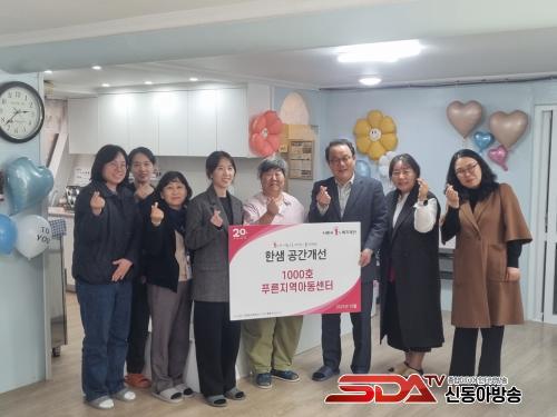 À̹ø Àü´Þ½ÄÀº ½ÃÈï½Ã1%º¹ÁöÀç´ÜÀÇ ÈÄ¿ø ¿¬°è¿Í ¢ßÇÑ»ùÀÇ ¡®Áö¿ª¾Æµ¿¼¾ÅÍ °ø°£°³¼±»ç¾÷¡¯ 1,000È£ Çà»ç·Î ¸¶·ÃµÆÀ¸¸ç, Ǫ¸¥Áö¿ª¾Æµ¿¼¾ÅͰ¡ 1,000¹øÂ° ÁÖÀΰøÀ¸·Î ¼±Á¤µÅ ÁøÇàµÆ´Ù. ÇÑ»ùÀº 2016³âºÎÅÍ ÈÄ¿ø±Ý°ú ¹°Ç°À» Áö¿ª¾Æµ¿¼¾ÅÍ¿¡ Áö¿øÇϸç, ¾Æµ¿ÀÇ ¾ÈÀüÇÏ°í µû¶æÇÑ È¯°æ Á¶¼º¿¡ ¾ÕÀå¼­ ¿Ô´Ù. ƯÈ÷ Áö¿ª»çȸ ÀÏ¿øÀ¸·Î¼­ »çȸÀû Ã¥ÀÓ°ú ¿ªÇÒÀ» ´ÙÇϱâ À§ÇØ ´Ù¾çÇÑ »çȸ°øÇå »ç¾÷À» È®´ëÇØ °¡°í ÀÖ´Ù.