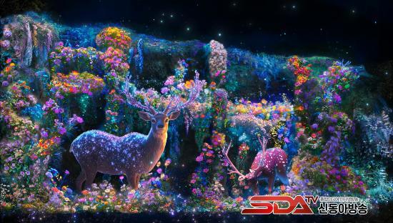 ³ôÀÌ 19m, Æø 41m ±Ô¸ðÀÇ ¹èºÀ»ê ½£¼Ó ÆøÆ÷´Â °ú°Å ä¼®ÀåÀ» º¹¿øÇØ Á¶¼ºµÈ ¼ö°æ½Ã¼³·Î, ÃÑ 64°³ÀÇ Á¶¸íÀÌ ¾î¿ì·¯Á® ºûÀÇ Ç⿬À» ¿¬ÃâÇÑ´Ù. À̹ø ¹Ìµð¾îÆÄ»çµå´Â ÆøÆ÷¸¦ ½ºÅ©¸°À¸·Î Ȱ¿ëÇØ ¿µ»ó°ú Á¶¸íÀÌ °áÇյǴ ¹æ½ÄÀ¸·Î ±¸ÇöµÇ¸ç, ¹°°ú ºûÀÌ ¸¸³ª ȯ»óÀûÀÎ ¾ß°æÀ» ¼±»çÇÑ´Ù.