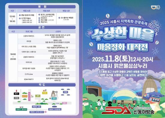 [½Åµ¿¾Æ¹æ¼Û ½ÃÈï½Ã=À̽ŵ¿±âÀÚ] ½ÃÈï½Ã´Â 2025³â ½ÃÈï½Ã Áö¿ªÆ¯È­ °ü±¤ÃàÁ¦ Áö¿ø»ç¾÷ ¼±Á¤ ÃàÁ¦ÀÎ ¡®¼ö»óÇÑ ¸¶À» ¸¶À»Á¤È­´ëÀÛÀü¡¯À» ¿À´Â 11¿ù 8ÀÏ Á¤¿Õµ¿ ¸¼Àº¹°»ó»ó´©¸® ÀÏ¿ø¿¡¼­ °³ÃÖÇÑ´Ù. À̹ø ÃàÁ¦´Â ½ÃÈï½Ã û³â¿¹¼ú¿¬ÇÕȸ°¡ ÁÖ°üÇÑ´Ù.