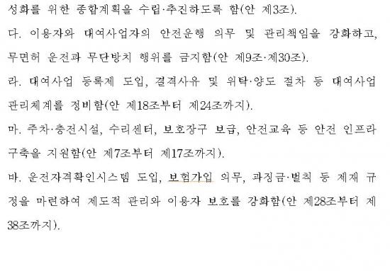 À̹ø ¹ý¾ÈÀº °³ÀÎÇü À̵¿¼ö´Ü °ü¸®¸¦ ±¹³» óÀ½À¸·Î¡®±âº»¹ý¡¯¼öÁØ¿¡¼ ÅëÇÕ °ü¸®Çϵµ·Ï ÇÏ¿´´Ù. ƯÈ÷, ÁöÀÚü°¡ º¸ÇàÀÚ ¾ÈÀü À§ÇùÀÌ ½É°¢ÇÑ Áö¿ª¿¡ ¡®Å±º¸µå ±ÝÁö±¸¿ª¡¯À» Á÷Á¢ ÁöÁ¤¡¤°ü¸®ÇÒ ¼ö ÀÖµµ·Ï Çϰí, ´ë¿©»ç¾÷ÀÚ¿¡°Ô ¿îÀüÀÚ°Ý È®ÀÎ Àǹ«¿Í ¹«¸éÇ㡤¹Ì¼º³âÀÚ ¿îÀü ±ÝÁö¸¦ °ÈÇß´Ù.