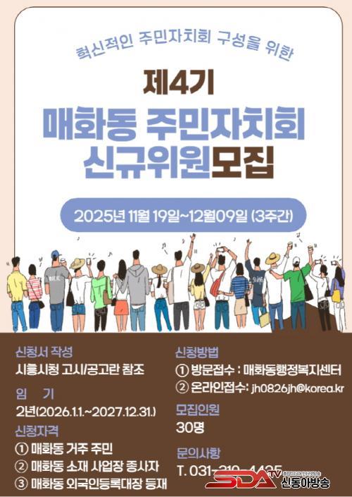 Á¦3±â ¸Åȵ¿ ÁÖ¹ÎÀÚġȸÀÇ ÀÓ±â(2024.01.01.~2025.12.31.)°¡ ¸¸·áµÊ¿¡ µû¶ó ¡¸½ÃÈï½Ã ÁÖ¹ÎÀÚġȸ ¹× ÁÖ¹ÎÀÚÄ¡¼¾ÅÍ ¼³Ä¡¡¤¿î¿µ¿¡ °üÇÑ Á¶·Ê¡¹¿¡ ±â¹ÝÇÑ ¸Åȵ¿ ¹ßÀüÀÇ Çõ½ÅÀûÀÎ ¸¶Àε带 °¡Áø Á¦4±â ½Å±ÔÀ§¿øÀ» ¼±¹ßÇϸç À§¿ø ÀÓ±â´Â 2³âÀ̰í Áßµµ ÇØÃËÀÌ °¡´ÉÇÏ´Ù.