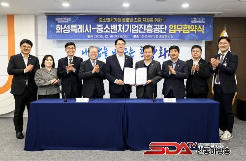 À̳¯ ½Ãû Áß¾ÓȸÀǽǿ¡¼ ¿¸° Çù¾à½Ä¿¡´Â Á¤¸í±Ù ȼºÆ¯·Ê½ÃÀåÀ» ºñ·ÔÇØ °¼®Áø Áß¼Òº¥Ã³±â¾÷ÁøÈï°ø´Ü ÀÌ»çÀå µî ÁÖ¿ä °ü°èÀÚ°¡ Âü¼®ÇØ °ü³» Áß¼Ò±â¾÷À» À§ÇÑ Çù·Â ÀÇÁö¸¦ ´ÙÁ³´Ù.