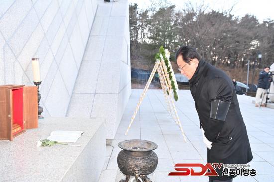 ÇÑÆí, ½Ã¹«½Ä¿¡ ¾Õ¼ Çϳ²½Ã´Â °Ë´Ü»ê ÇöÃæÅ¾¿¡¼ ¼ø±¹¼±¿°ú È£±¹¿µ·ÉÀÇ ³ÌÀ» ±â¸®´Â ¡®½Å³â Âü¹è½Ä¡¯À» °ÅÇàÇß´Ù.