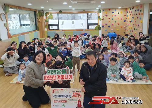 ±¸¸³ ¸Å¹ÙÀ§¾î¸°ÀÌÁýÀº ¸Å³â ÀÌ¿ôÀ» µ½±â À§ÇØ ´Ù¾çÇÑ ³ª´® Ȱµ¿À» ÇØ¿À°í ÀÖ´Ù. À̹ø ¼º±ÝÀº Áö³ 6¿ù º·è½ÃÀåÀ» ÅëÇØ ¸¶·ÃÇÑ ¼öÀͱÝÀ¸·Î ¾î¸°ÀÌÁý ±³»ç, ¿ø¾Æ, ÇкθðµéÀÌ ¾î·Á¿î ÀÌ¿ôÀ» À§ÇØ ¸ðµÎ ÇѶæÀ¸·Î ±âºÎ¿¡ µ¿ÂüÇß´Ù.