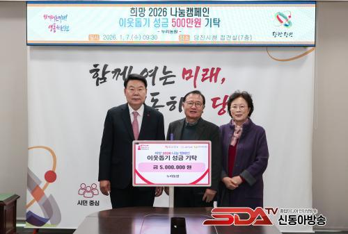 À̳¯ ±âŹ½Ä¿¡´Â ´©¸®³ó¿ø ±èÀº¼ö, ±èż÷ ´ëÇ¥¸¦ ºñ·ÔÇØ ¿À¼ºÈ¯ ´çÁø½ÃÀåÀÌ Âü¼®ÇØ µû¶æÇÑ ³ª´®ÀÇ ¶æÀ» ³ª´³´Ù. ±âŹÇÑ ¼º±ÝÀº Ãæ³²»çȸº¹Áö°øµ¿¸ð±Ýȸ ´çÁø½Ã Àü¿ë °èÁ¸¦ ÅëÇØ Àü´ÞÇßÀ¸¸ç, Ãë¾à°èÃþ°ú º¹Áö »ç°¢Áö´ë¿¡ ³õÀÎ ÀÌ¿ôµéÀ» À§ÇÑ »ç¾÷¿¡ »ç¿ëÇÒ ¿¹Á¤ÀÌ´Ù.