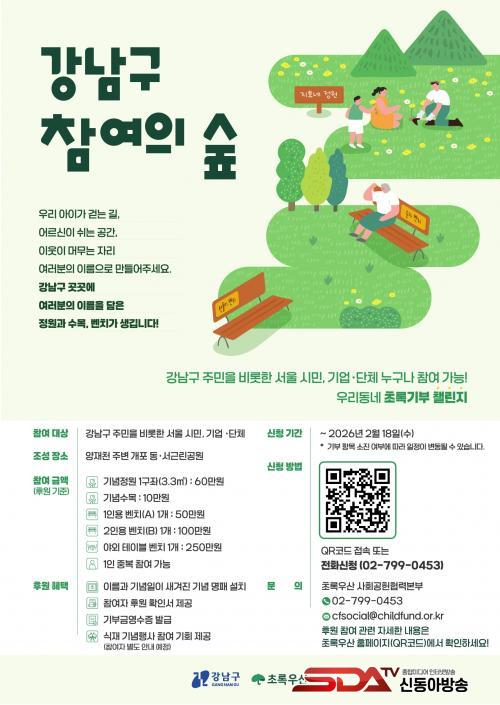 Á¶¼º¸í °­³²±¸Ã»ÀåÀº ¡°À̹ø »ç¾÷Àº °³ÀÎÀÇ ¼ÒÁßÇÑ ±â³äÀϰú Ãß¾ïÀÌ °­³²ÀÇ °ø¿ø °÷°÷¿¡ ½º¸çµé¾î, ÀÌ¿ô°ú ¾ÆÀ̵éÀÌ ÇÔ²² ´©¸®´Â ½°ÅÍ·Î Àçź»ýÇÏ´Â ¶æ±íÀº ³ª´®¡±À̶ó¸ç, ¡°¾ÕÀ¸·Îµµ ÀÏ»ó ¼Ó ³ìÁö °ø°£À» È®ÃæÇϰí, ¹Ì·¡¼¼´ë°¡ ÀÚ¿¬ÀÇ ÇýÅÃÀ» ¸¶À½²¯ ´©¸± ¼ö ÀÖ´Â Áö¼Ó °¡´ÉÇÑ °­³²À» ¸¸µé¾î ³ª°¡°Ú´Ù¡±°í ¹àÇû´Ù.