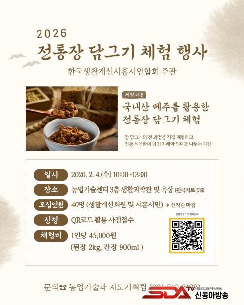 [½Åµ¿¾Æ¹æ¼Û ½ÃÈï½Ã=À̽ŵ¿±âÀÚ] ½ÃÈï½Ã ¿©¼º³ó¾÷ÀÎ ´Üü Çѱ¹»ýȰ°³¼±½ÃÈï½Ã¿¬ÇÕȸ´Â ¿ì¸® °íÀ¯ÀÇ ÀüÅë ¹ßÈ¿½Äǰ ¹®È­¸¦ °è½Â¤ýÈ®»êÇϱâ À§ÇØ ½Ã¹Î°ú ÇÔ²²ÇÏ´Â ¡®ÀüÅë Àå ´ã±×±â üÇèÇà»ç¡¯¸¦ ¿À´Â 2¿ù 4ÀÏ ½ÃÈï½Ã³ó¾÷±â¼ú¼¾ÅÍ¿¡¼­ ¿¬´Ù.