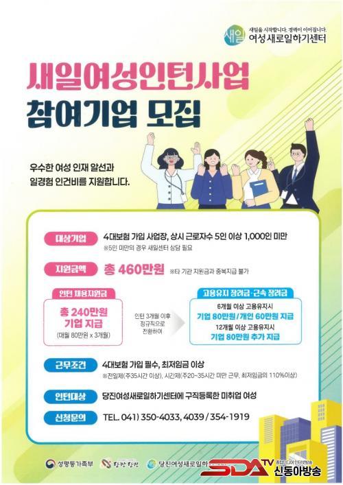 [½Åµ¿¾Æ¹æ¼Û=ÀÌÀçö±âÀÚ] ´çÁø½Ã´Â ´çÁø¿©¼º»õ·ÎÀÏÇϱ⼾ÅÍ¿¡¼­ ¡®»õÀÏ¿©¼ºÀÎÅÏ»ç¾÷¡¯¿¡ Âü¿©ÇÒ ±â¾÷°ú Âü¿©ÀÚ¸¦ ¿¬Áß »ó½Ã ¸ðÁýÇÑ´Ù°í 27ÀÏ ¹àÇû´Ù.