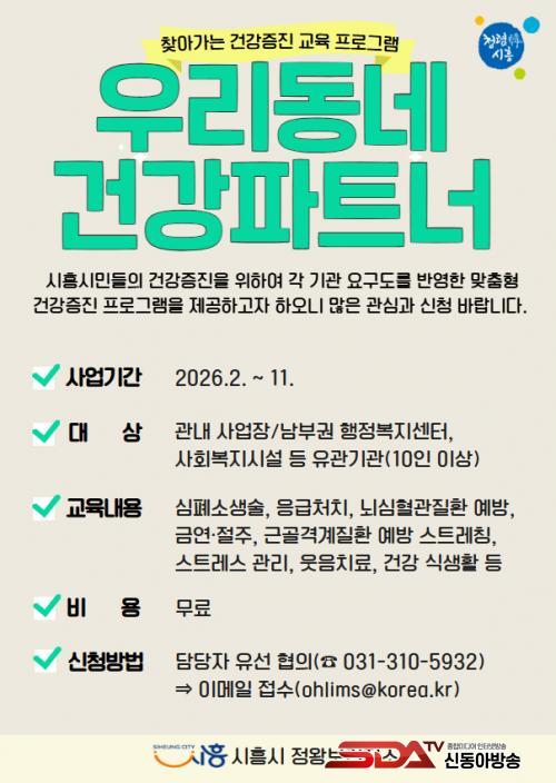 [½Åµ¿¾Æ¹æ¼Û ½ÃÈï½Ã=À̽ŵ¿±âÀÚ] ½ÃÈï½Ã´Â ½Ã°£Àû¤ý°Å¸®Àû Á¦¾àÀ¸·Î °Ç°­ÁõÁø ¼­ºñ½º¸¦ ÀÌ¿ëÇϱ⠾î·Á¿î ½Ã¹ÎµéÀ» À§ÇØ 2¿ùºÎÅÍ 11¿ù±îÁö ã¾Æ°¡´Â °Ç°­ÁõÁø ÇÁ·Î±×·¥ ¡®¿ì¸®µ¿³× °Ç°­ÆÄÆ®³Ê¡¯¸¦ ¿î¿µÇÑ´Ù.