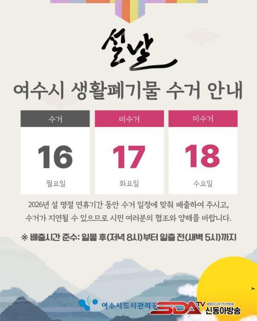 ¿©¼ö½Ãµµ½Ã°ü¸®°ø´Ü, 2026³â ¼³ ¸íÀý ´ëºñ Ưº° ȯ°æÁ¤ºñ ÃßÁø ¹× ÈÞ¹« ¾È³»
