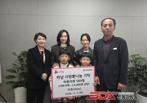 [½Åµ¿¾Æ¹æ¼Û Çϳ²½Ã=À̽ŵ¿±âÀÚ] Áö³­ 3ÀÏ, Çϳ²½Ã¿¡ ¼ÒÀçÇÑ ¾Æµ¿ÀÇ·ù ÆÇ¸Å¾÷ü ÀÌÈ£(Hijo)°¡ Áö¿ª ³» Ãë¾à°èÃþ ¾Æµ¿À» Áö¿øÇϱâ À§ÇØ ¾Æµ¿ÀÇ·ù 589¹ú(±âºÎ°¡¾× 2,524¸¸¿ø »ó´ç)À» ¡®Çϳ² »ç¶ûäñ³ª´®¡¯ ¼ºÇ°À¸·Î ±âŹÇÏ¸ç µû¶æÇÑ ³ª´®À» ½ÇõÇß´Ù.