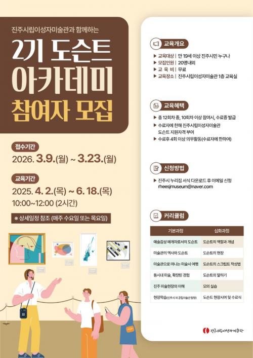 [½Åµ¿¾Æ¹æ¼Û °æ³²ÁøÁÖ=³²±Ã¿µ±â±âÀÚ] ÁøÁֽø³À̼ºÀڹ̼ú°üÀº ½Ã¹ÎÀÇ ¹®È­Àû ¿ª·® °­È­¿Í Àü¹®ÀûÀÎ Àü½Ã ÇØ¼³ ÀηÂÀ» ¾ç¼ºÇϱâ À§ÇØ ¡®2±â µµ½¼Æ® ¾ÆÄ«µ¥¹Ì¡¯ ¼ö°­»ýÀ» 9ÀϺÎÅÍ ¿À´Â 23ÀϱîÁö ¸ðÁýÇÑ´Ù.