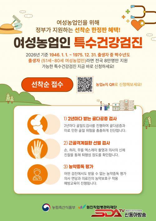 À̹ø »ç¾÷Àº 1946³â»ýºÎÅÍ 1975³â»ý(51¼¼~80¼¼) »çÀÌ ¿©¼º³ó¾÷ÀÎ °¡¿îµ¥ ¦¼ö³âµµ Ãâ»ýÀÚ¸¦ ´ë»óÀ¸·Î Çϸç, ³ó¾÷°æ¿µÃ¼ µî·ÏÀÌ Çʼö Á¶°ÇÀÌ´Ù. Àüü ¼ö°Ë ´ë»óÀÚ´Â 976¸íÀÌ¸ç ¸ðÁý ÀοøÀÌ ¹Ì´ÞµÉ °æ¿ì ÇϹݱ⿡ Àç°ø°íÇÒ ¿¹Á¤ÀÌ´Ù.