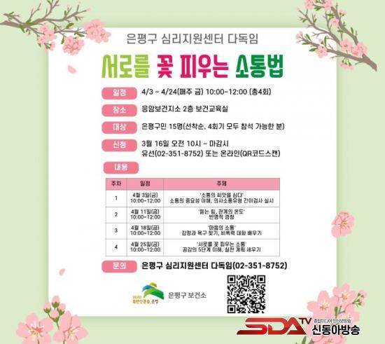 [½Åµ¿¾Æ¹æ¼Û ÀºÆò±¸=À̽ŵ¿±âÀÚ] ¼­¿ï ÀºÆò±¸´Â ¿À´Â 16ÀϺÎÅÍ °Ç°­ÇÑ ¼ÒÅë ¹æ¹ýÀ» ¹è¿ì´Â ¸¶À½µ¹º½ ÇÁ·Î±×·¥ ¡®¼­·Î¸¦ ²É ÇÇ¿ì´Â ¼ÒÅë¹ý¡¯ Âü¿©ÀÚ¸¦ ¸ðÁýÇÑ´Ù°í ¹àÇû´Ù.