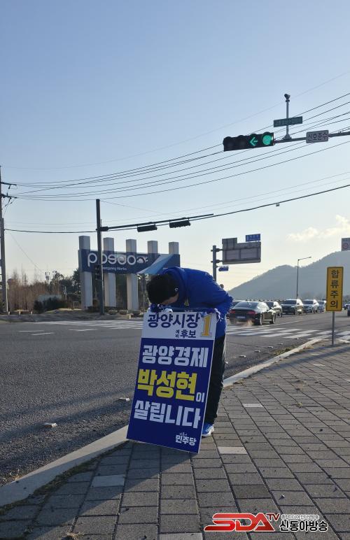 [½Åµ¿¾Æ¹æ¼Û Àü³²±¤¾ç=¹Ú±¤¿Á±âÀÚ] ±¤¾ç½ÃÀå ¼±°Å¿¡ Ã⸶ÇÑ ¹ÎÁÖ´ç ¹Ú¼ºÇö ¿¹ºñÈ帴 13ÀÏ ¿ÀÀü 6½Ã 30²² ±¤¾ç½Ã ±ÝÈ£µ¿ ±ÝÈ£´ë±³ ÀÏ´ë¿Í ¿©¼ö±¤¾çÇ׸¸°ø»ç Á¤¹® ¾Õ¿¡¼­ ¾ÆÄ§ Ãâ±Ù±æ¿¡ ³ª¼± ½Ã¹Îµé°ú Â÷·® ¿îÀüÀڵ鿡°Ô Àλ縦 Çϸç ÁöÁö¸¦ È£¼ÒÇϰí ÀÖ´Ù.