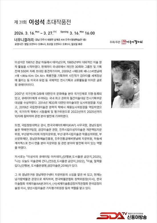 ÇÑÆí À̹ø Àü½Ã´Â 2026³âµµ ³Ê¿ì´Ï°¶·¯¸® ÀÛ°¡ ÃÊ´ëÀüÀÇ ÀÏȯÀ¸·Î ¸¶·ÃµÆ´Ù. ÁøÁֽà Æò»ýÇнÀ°ü ³»¿¡ À§Ä¡ÇÑ ³Ê¿ì´Ï°¶·¯¸®´Â Áö¿ª ¿¹¼úÀΰú ½Ã¹ÎÀÌ ÇÔ²²ÇÏ´Â ¹®È­¿¹¼ú °ø°£À¸·Î, ´Ù¾çÇÑ Àü½Ã¸¦ ÅëÇØ ½Ã¹Îµé¿¡°Ô ¿¹¼ú ÇâÀ¯ÀÇ ±âȸ¸¦ Á¦°øÇϰí Áö¿ª ¹®È­¿¹¼ú Ȱ¼ºÈ­¿¡ ±â¿©Çϰí ÀÖ´Ù.