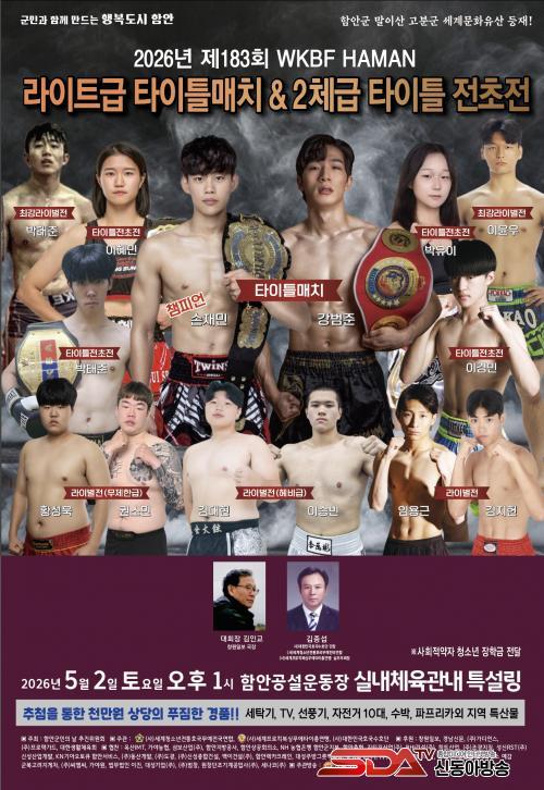[½Åµ¿¾Æ¹æ¼ÛÇÔ¾È=À̽ŵ¿±âÀÚ]¿À´Â 2026³â ÇԾȱº¹ÎÀdz¯ 5¿ù2ÀÏ Åä¿äÀÏ ¿ÀÈÄ1½Ã, ÇÔ¾È °ø¼³¿îµ¿Àå ½Ç³»Ã¼À°°ü³» Ư¼³¸µ¿¡¼­ Á¦183ȸ WKBF HAMAN ¶óÀÌÆ®±Þ ŸÀÌÆ²¸ÅÄ¡ &2ü±Þ ŸÀÌÆ² ÀüÃÊÀü ½ÃÀÛÇÑ´Ù.