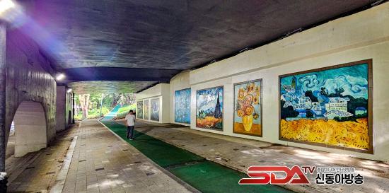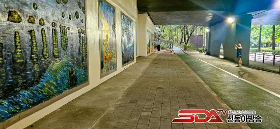 À̹ø »ç¾÷Àº °­³²µÑ·¹±æ ÀçÁ¤ºñ¿Í ¿¬°èÇØ ¾çÀçõÀÇ °¡Ä¡¸¦ ³ôÀ̰í, ½Ã¹Îµé¿¡°Ô ÄèÀûÇϸ鼭µµ ¸Å·ÂÀûÀÎ °ø°£À» Á¦°øÇϱâ À§ÇØ ÃßÁøµÆ´Ù. ³ôÀÌ 4.9m, ±æÀÌ 41.7m ±Ô¸ðÀÇ ±³°¢ ÇϺΠº¸ÇàÅë·Î º®¸é¿¡ ¡®·Ð°­ÀÇ º°ÀÌ ºû³ª´Â ¹ã¡¯, ¡®¹ãÀÇ Ä«Æä Å׶󽺡¯, ¡®Çعٶó±â¡¯ µî °íÈåÀÇ ´ëÇ¥ÀÛ 7Á¡ÀÌ º®È­·Î ÀçÇöµÆ´Ù. ´Ü¼øÇÑ Àå½ÄÀÌ ¾Æ´Ï¶ó, ÆäÀÎÆ®¿Í ŸÀÏÀ» °áÇÕÇÑ ¹æ½ÄÀ¸·Î ³»±¸¼º°ú ¿¹¼ú¼ºÀ» µ¿½Ã¿¡ »ì·È´Ù.